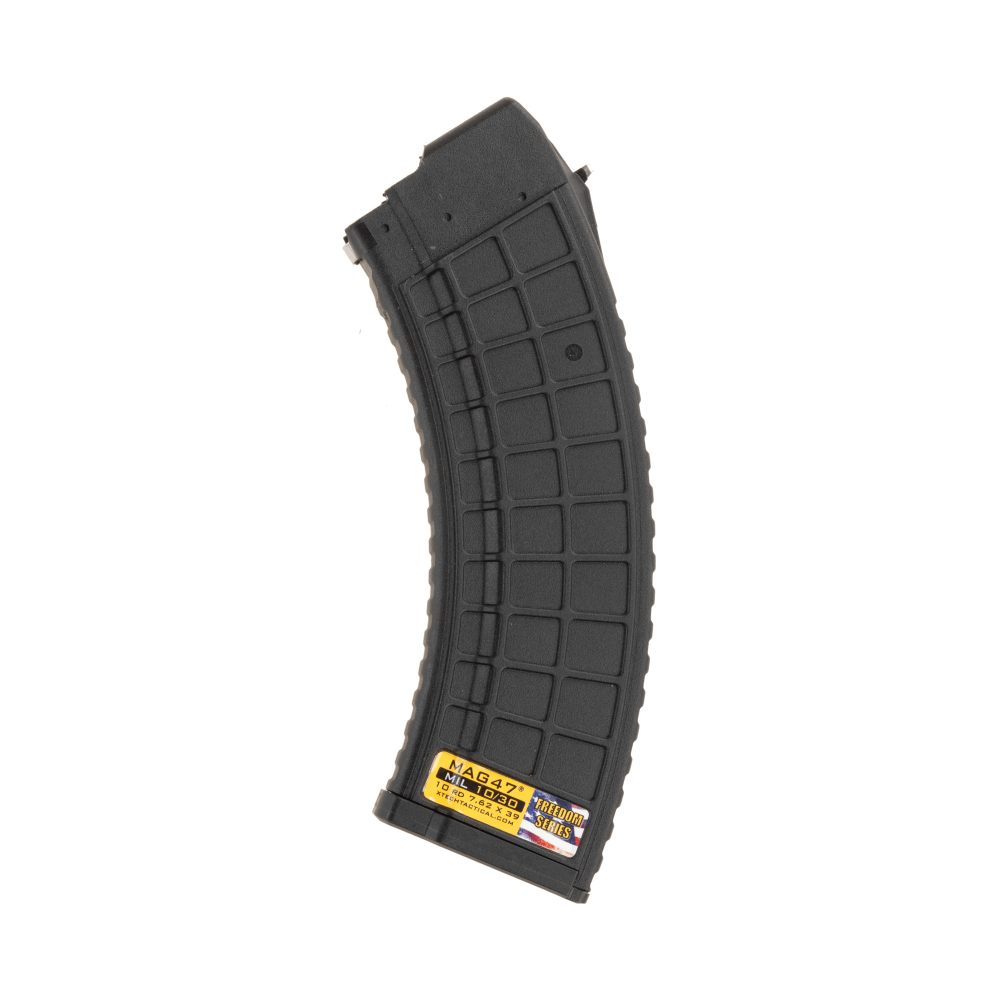 Our new upgraded version of the MAG47 MIL has improved tread for better grip, reduced overall thickness of 0.065″ for better fit in pouches and updated follower for improved compatibility with all AKs.